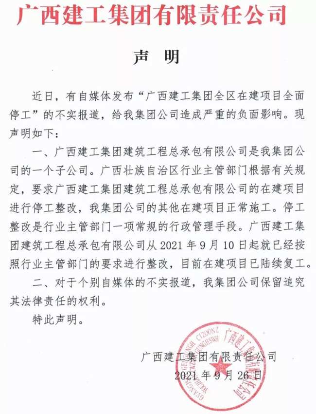 廣西建工集團聲明